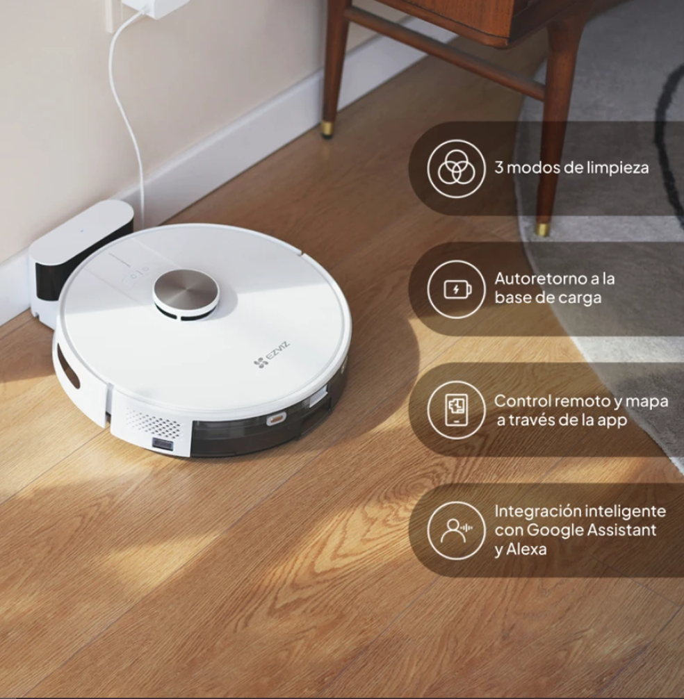 La aspiradora RE5 EZVIZ cuenta con una notable potencia de succión de 4000 Pa, capaz de manejar eficientemente tanto la aspiración como las tareas de fregado. El RE5 presenta una navegación inteligente y sin problemas, impulsada por la tecnología avanzada LDS LiDAR y sensores infrarrojos que esquivan hábilmente los obstáculos en tiempo real. No solo personaliza las rutas de limpieza para satisfacer necesidades específicas, sino que también presenta un diseño compacto y centrado en el usuario, lo que lo convierte en la elección perfecta para una variedad de hogares modernos.